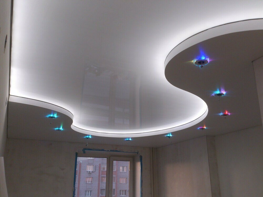 Кроме того, натяжной потолок с подсветкой включает и такие преимущества: